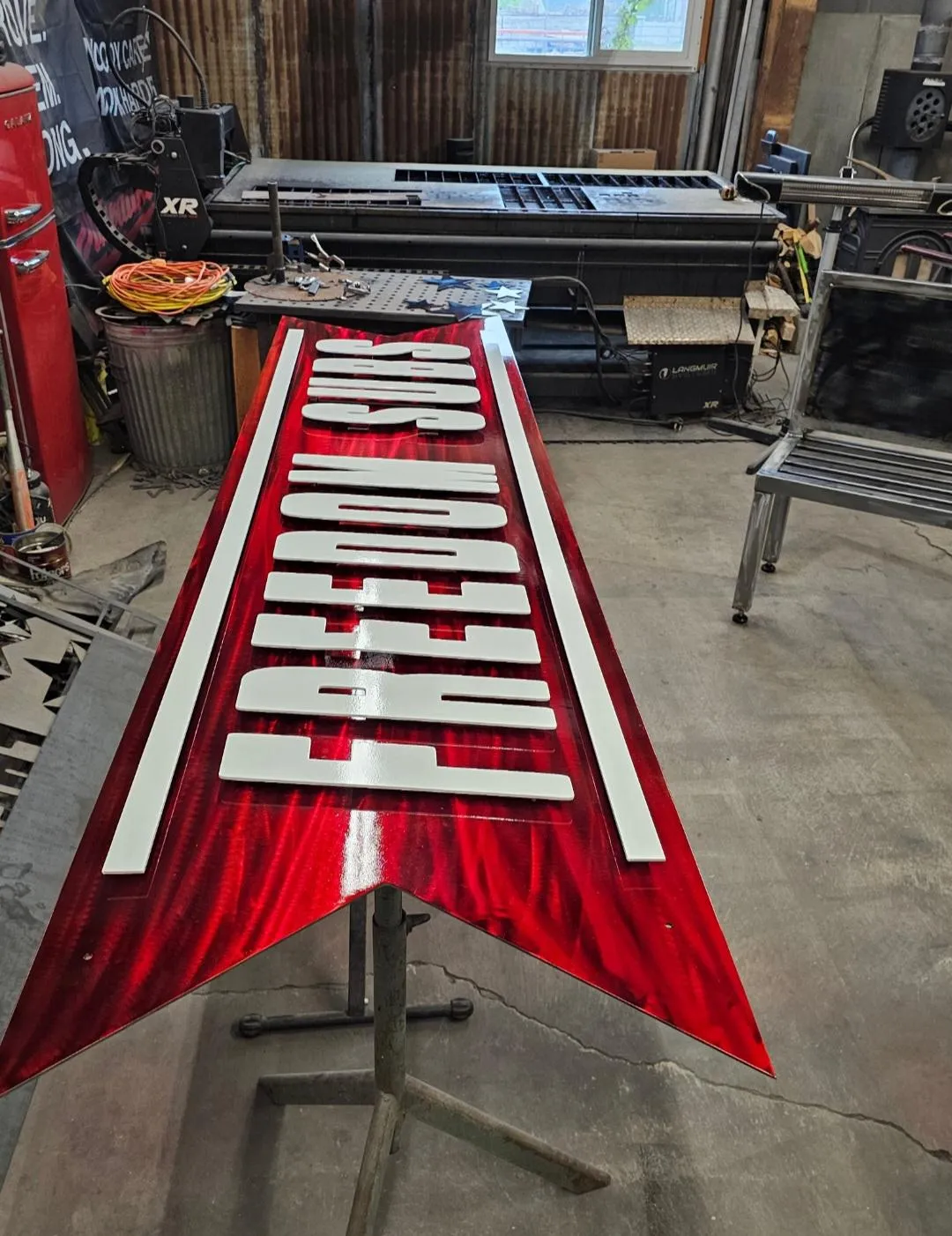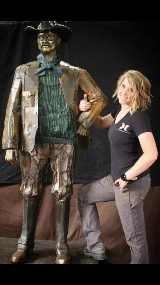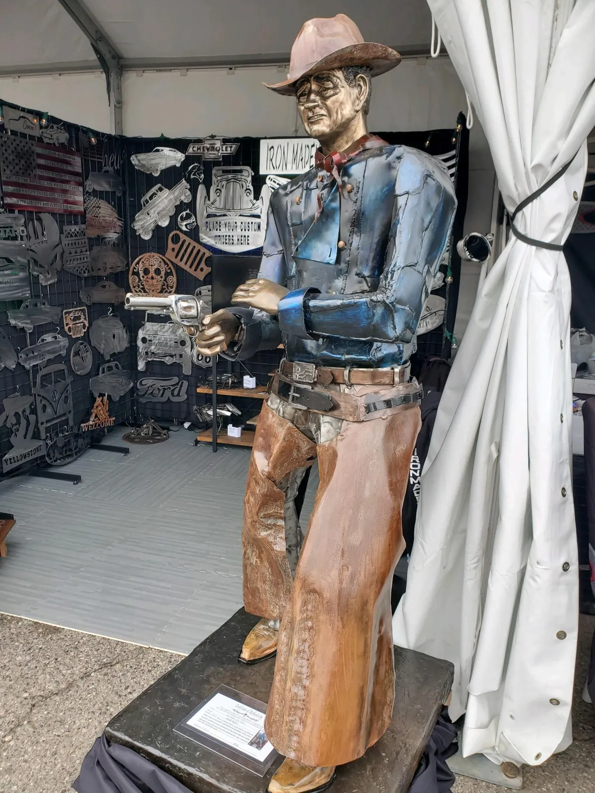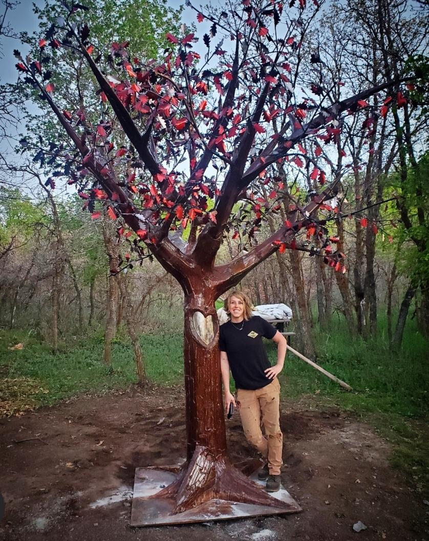 hand shaped and welded using sheet metal then patina added and sealed with epoxy. 1,300 lbs